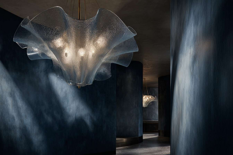 This exhibit explores frosted finishes, flowing silhouettes, and the quiet rhythm of draped glass and softened edges.
