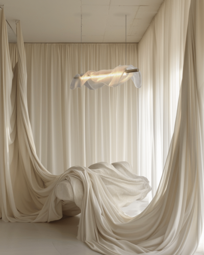 Sculptural and refined, capturing the quiet rhythm of draped glass and softened edges.